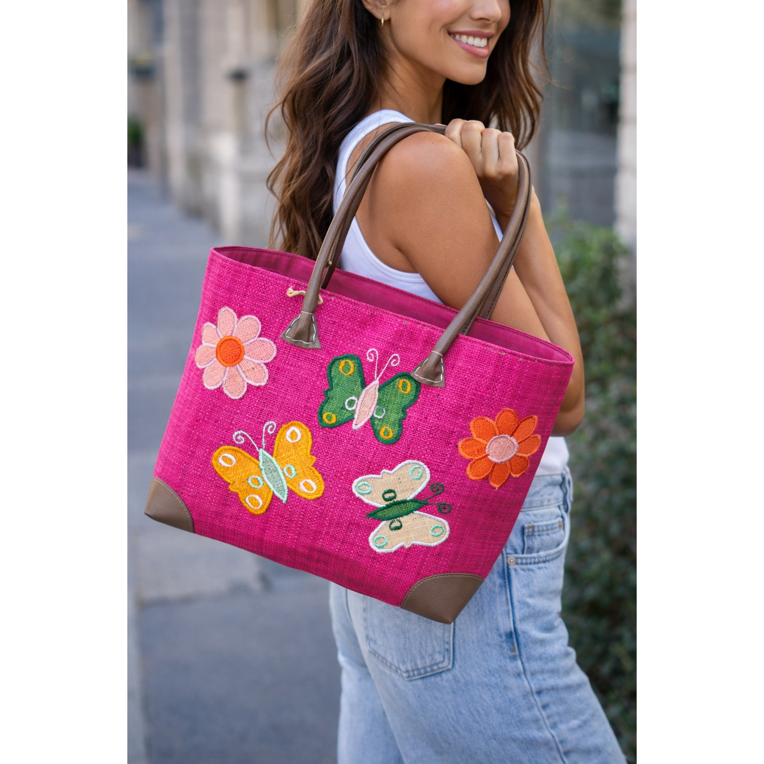 Butterfly raffia basket